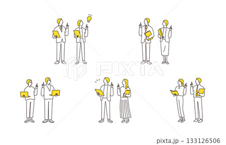 PCや書類ファイルを持って納得する、いろんな部署のビジネスパーソンセット
