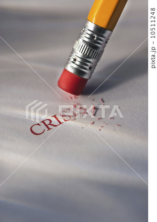 Studio shot of pencil erasing the word bankruptcy from piece of paper
