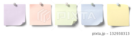 ピンで貼られた、ペールトーンの付箋のテクスチャー