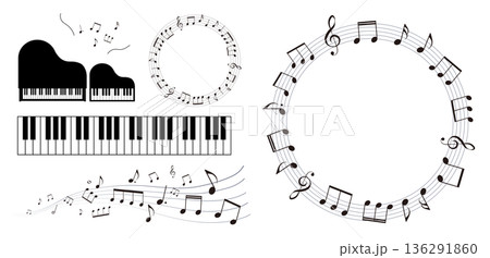 五線譜のフレームイラスト ピアノのイラスト素材 鍵盤