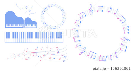 カラフルな五線譜のフレームイラスト ピアノのイラスト素材 鍵盤