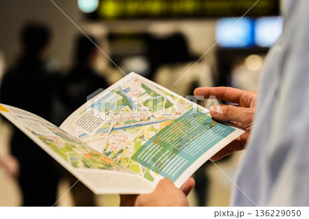 旅行ガイドブックを読む人 ■撮影協力:関西国際空港(KIX)