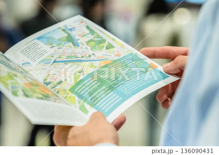 パンフレットを見る手元 ■撮影協力:関西国際空港(KIX)