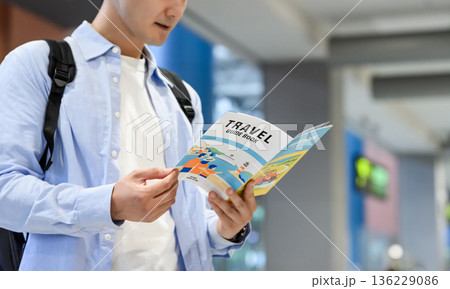 男性がガイドブックを読む _■撮影協力:関西国際空港(KIX)