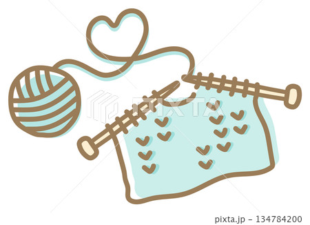 手描きシンプルな編み物イメージのイラストのセット