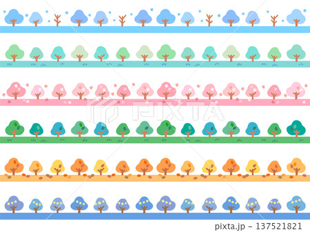 かわいい四季の木ラインイラスト素材セット|春夏秋冬・装飾