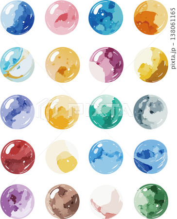 水彩画風のカラフルなビー玉