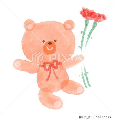 カーネーションの花束を持ったテディベア 母の日 感謝 グリーティング