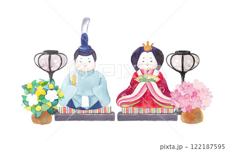 水彩で描いたコロンとした雛人形