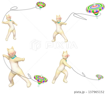 人間型のネコやウサギがアクロバット的なコマ回しをしている (合成用5セット)