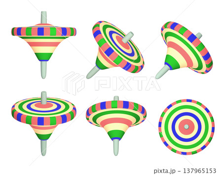 紐付きのカラフルな独楽(こま)のイラスト