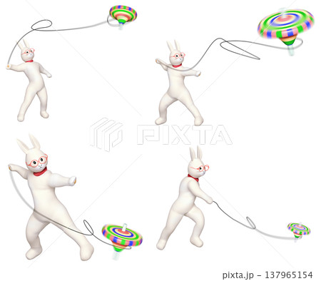 人間型のウサギが曲独楽をしている合成用4セット