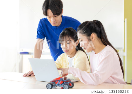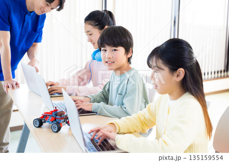 プログラミング教室で学ぶ小学生
