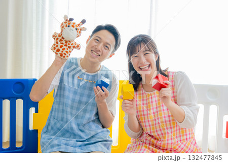 保育園で遊ぶ子供と保育士