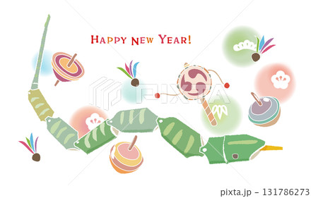 お正月の 羽子板とこまのイラスト 縁起物
