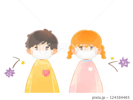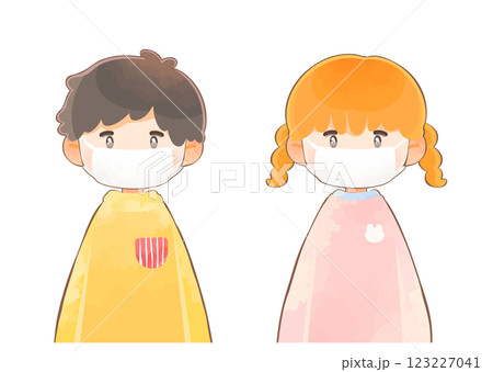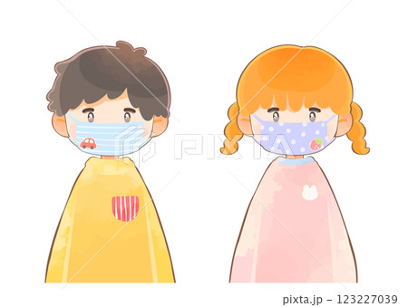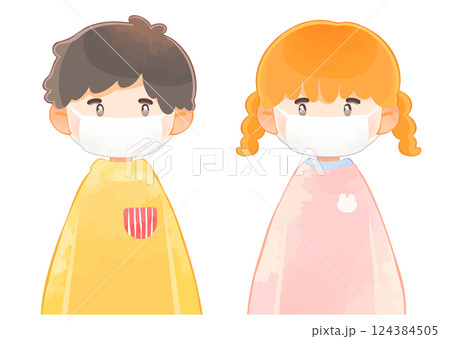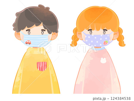 マスクをしてウイルス対策をする子供 男の子と女の子