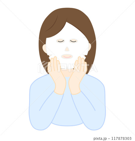 美容のフェイスパックをする女性のイラスト。ビューティーイメージ素材
