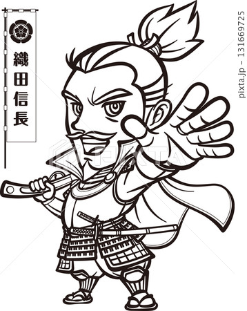 鉄砲を持って立つ武装した織田信長【3頭身・白黒・ベクター】