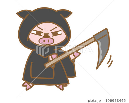 ハロウィン 死神に仮装するぶた