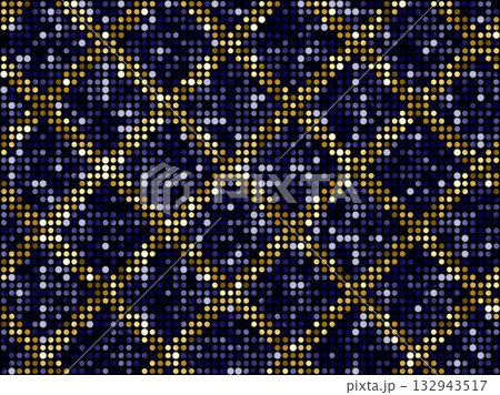 Golden disco ball mosaic background with glitter pixel texture. Shiny yellow gold sequin mirror pattern with dance floor decoration. Glam sparkle wall. Vector abstract bg illustration