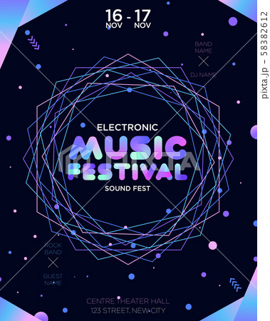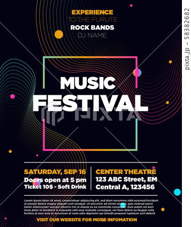 Electronic Music Covers for Summer Night Party or Club Party Flyer. Colorful Waves Gradient Background. Template for DJ Poster, Web Banner, Pop-Up.