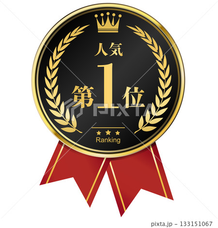 ランキングフレームのセット シンプル リボン 王冠 メダル 飾り 月桂樹 イラスト 金賞 表彰 赤