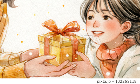 ギフトボックスとラッピング袋の水彩イラストセット-誕生日やクリスマス、バレンタインなど贈り物シーンに