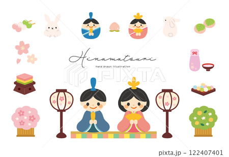 ひな祭り ひな人形 A (手描きのゆるいイラスト)