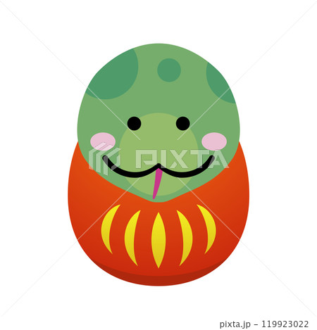 かわいいダルマに扮した蛇の年賀状