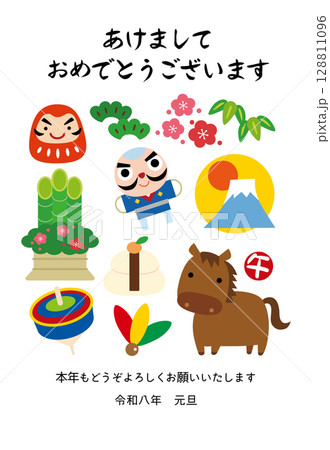 2026年 午年の縁起物年賀状/横03