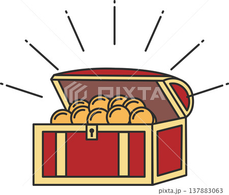 財宝の宝箱のシンプルな手描き線画イラスト 透過背景の切り抜き