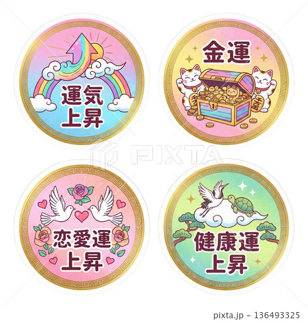 開運丸型ステッカーセット|金運恋愛健康運気上昇