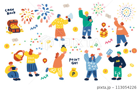 ポイント獲得、ポイ活、ポイントプレゼントなどポイント関係のアイコン・イラスト素材セット