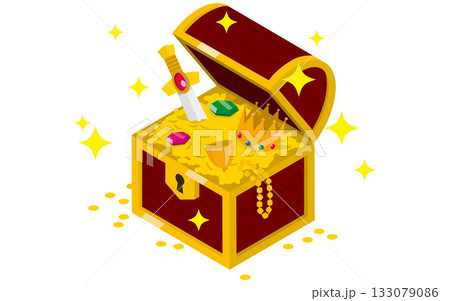 斜めから見たコインがいっぱい入った宝箱のイラスト