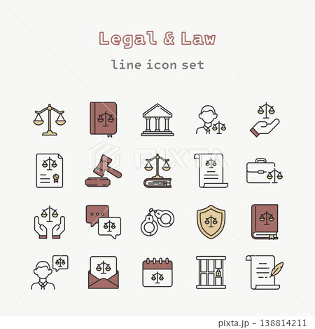 法律・弁護士・裁判に関するラインアイコンのセット