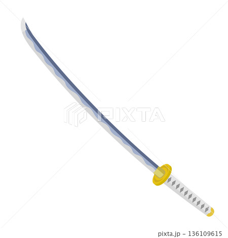 Outlined katana shows curved blade and distinct guard design, a traditional samurai sword