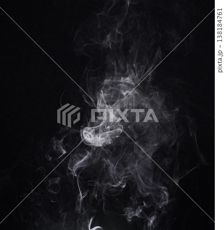 White smoke, creative and art on black background, fog and pattern in vapor, mist and incense. Fumes, smog and steam or air, gas and dry ice effect in abstract, artistic and pollution with mystery