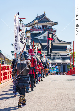 関東・小田原北条五代祭り(北條五代祭り)・戦国時代の武者行列を眺める観光犬・神奈川県小田原市