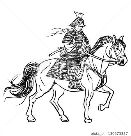 武装して乗馬する直江兼続【3頭身・白黒・ベクター】