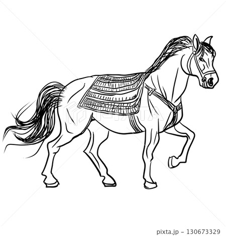 武装して馬に乗る上杉謙信【3頭身・白黒・ビットマップ】
