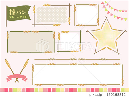 こんがり焼き色の棒パン シンプルな春色フレームイラストセット