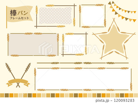 こんがり焼き色の棒パン シンプルなフレームイラストセット