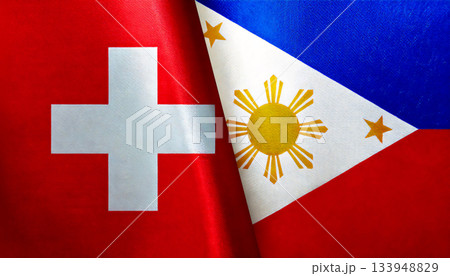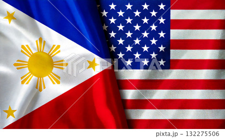 国旗のイラスト クレヨンタッチ 日本とフィリピン