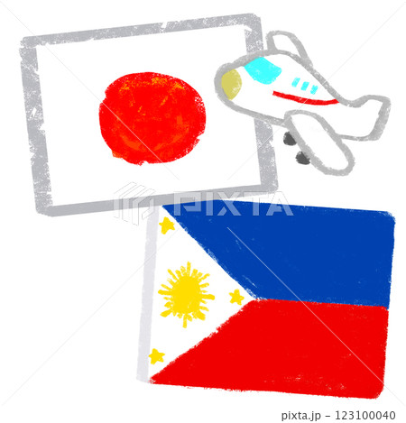 国旗のイラスト クレヨンタッチ 日本とフィリピン