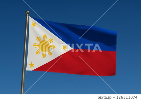 フィリピン共和国のはためく国旗の3Dイラスト(正面)
