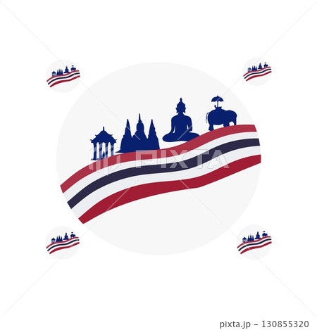 thai national flag day Design free vector illustration Thai Ribbon Flags on Blue Backgrounds