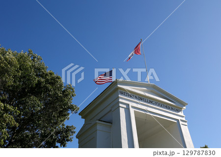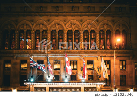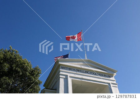 歴史的建築物とカナダ国旗