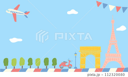 フランスをイメージした背景フレーム、おしゃれな手描きイラスト