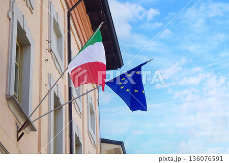 イタリア国旗 EUの旗 ヨーロッパ 国旗 快晴