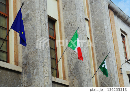 イタリア国旗 EUの旗 ロンバルディアの旗 国旗 快晴